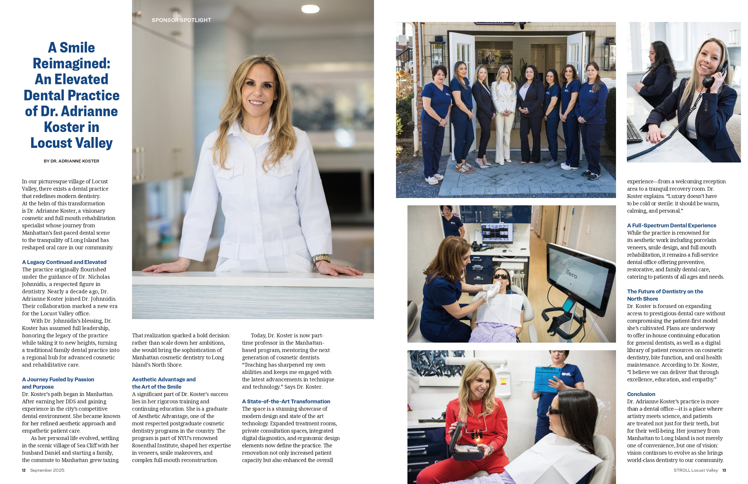 Dr. Koster has expanded her expertise through advanced cosmetic dentistry training at Aesthetic Advantage, an elite program at the NYU College of Dentistry’s Rosenthal Center. Under the guidance of top mentors, she refined her skills in high-tech cosmetic treatments and gained advanced knowledge in patient-centered aesthetic dentistry. In addition to completing the program’s master's track, Dr. Koster now serves as an instructor at Aesthetic Advantage, teaching alongside some of the top cosmetic dentists in the country.